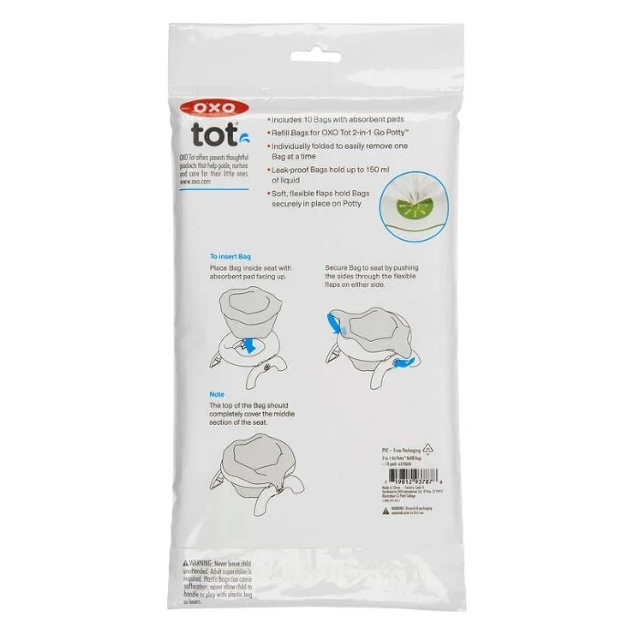 For your convenience, we offer these refill bags in packs of 10 or 30. The 2-in-1 Go Potty can be used with these disposable bags or as a potty seat on a grown-up toilet.