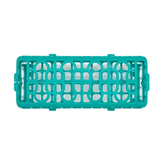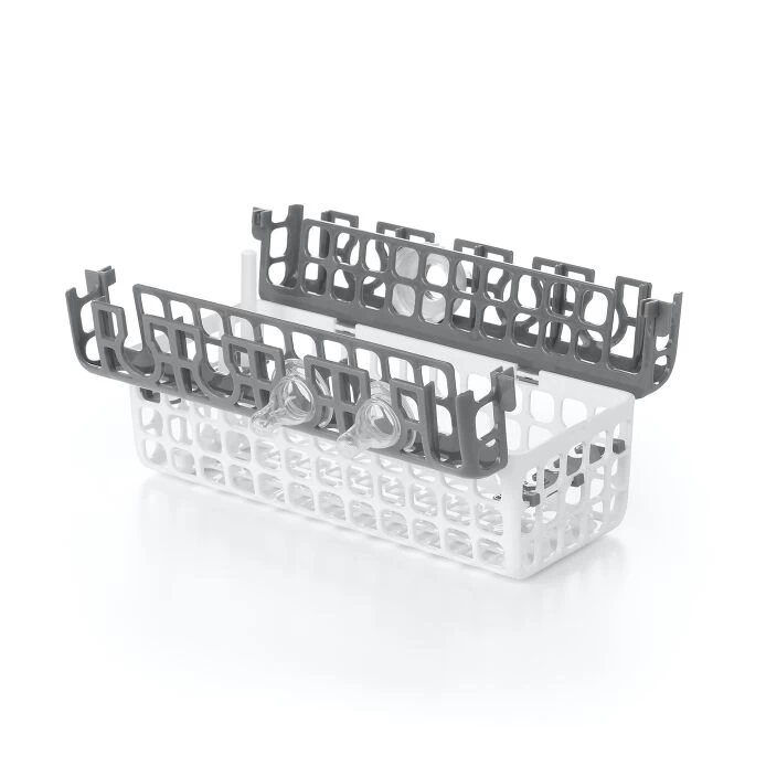 Don’t let bottle nipples, sippy cup parts, straws and removable valves get lost in the dishwasher. Accommodates up to 8 bottle nipples and bottle parts. Doors open symmetrically to prevent toppling during loading and unloading. Internal flip-down straw holders keep straws secure and upright.