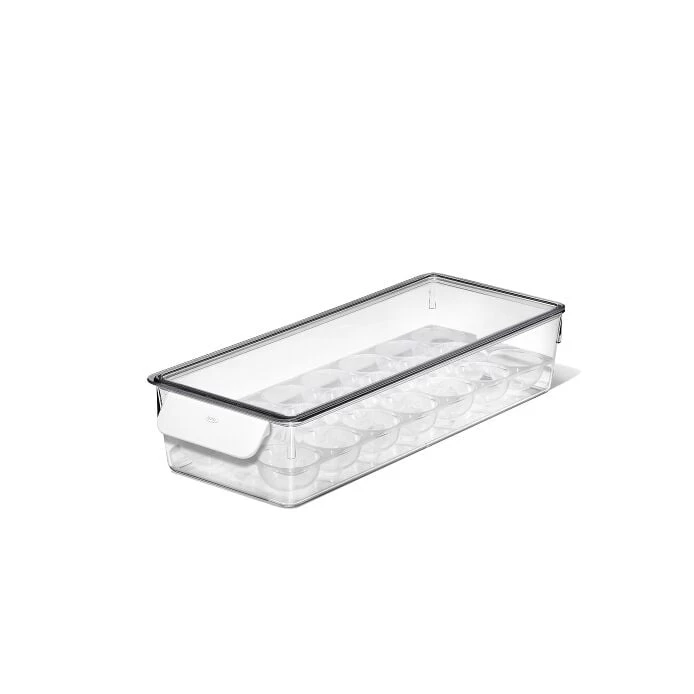Longing to finally organize the contents of your fridge? Seeking a better way to keep an eye on expired food? The OXO 8-Piece Refrigerator Organization Set has everything you need for a complete fridge overhaul. The modular system keeps produce, beverages, condiments and more, tidy and well-organized. Each component is designed to work together and is versatile enough to give you the customization you need. Our set includes two sizes of bins for a visually pleasing way to contain food, find it fast and keep tabs on when it’s time to restock. Two sizes of trays offer a helping hand to sort bulk meat, poultry, dairy and produce, while a spacious clear lidded egg bin keeps fragile eggs protected. We’ve even included a clever dual-sided mat designed to keep beverage cans or bottles from rolling away. With our 8-Piece Refrigerator Organization Set we’ve got your fridge needs covered.