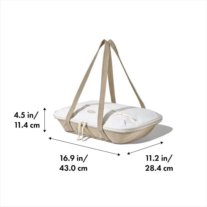 The OXO Good Grips Insulated Bakeware Carrier is the ideal way to carry a casserole to a potluck or to tote a tiramisu to a party. It holds most 9×13 baking dishes and is designed to keep hot foods hot and cold foods cold for hours with foam insulation and aluminum fabric lining. The Carrier’s comfortable handles can handle even heavy dishes, and a zippered pocket on the front gives you a convenient place to stash a serving spoon or some napkins. Durable exterior fabric and pocket are made of 100% recycled materials, and the lining cleans up easily. Glass bakeware sold separately.Features Keeps dishes hot or cold for hours with foam insulation and aluminum fabric lining Lining is easy to clean and protects against messy spills and drips Exterior front zippered pocket holds serving utensils, napkins and more Fits most 9×13 bakeware Generous handles provide a comfortable grip for even the heaviest of dishes Durable exterior fabric and pockets made of 100% recycled material Glass bakeware sold separately Wipe Clean