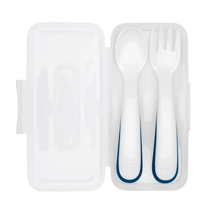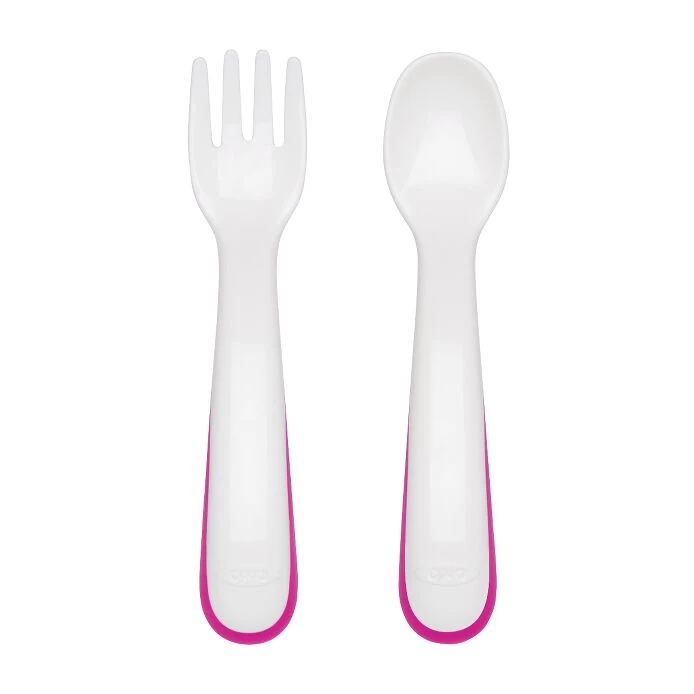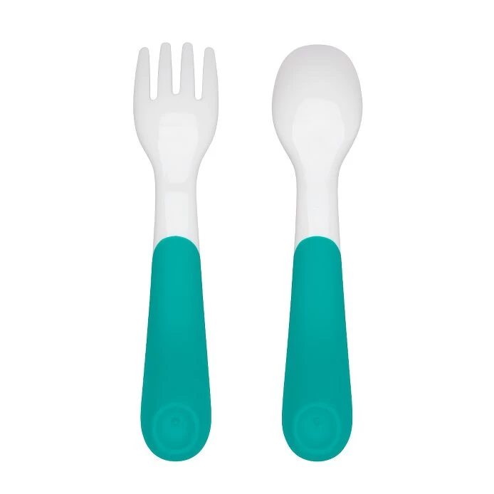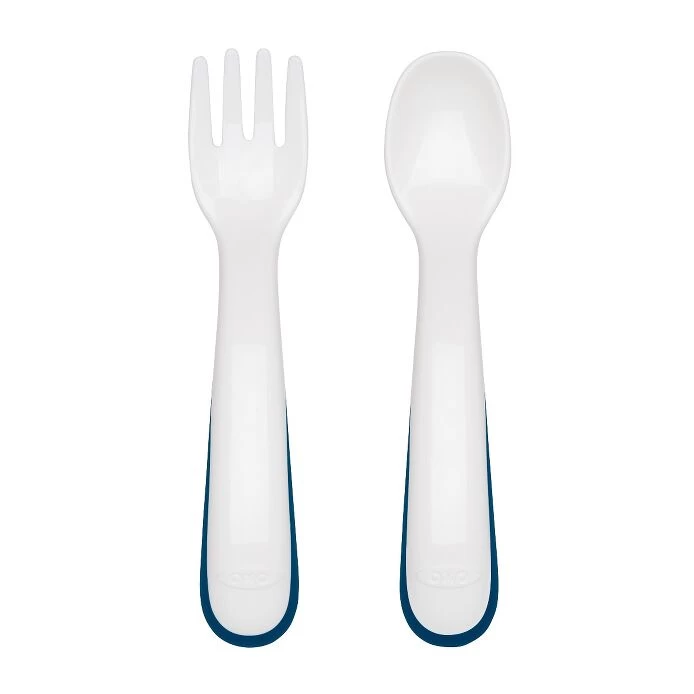 The OXO Tot Plastic Fork & Spoon Set is the perfect starter set for little eaters. The rounded handles are designed with tots’ hands in mind, making it easy for them to grip while taking their first solo bites. The spoon head is the perfect shape and size for little mouths and the rounded fork tines are effective but safe for little learners.