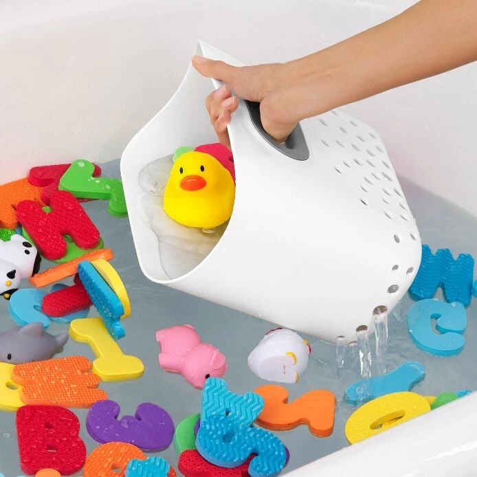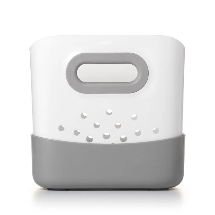 Keep baby’s bath toys contained with the OXO Tot Stand Up Bath Toy Bin. The 7.1 L capacity can handle everything from rubber duckies to toy boats and carefully sized hole pattern will dry them quickly. Soft, comfy handles make scooping up toys a cinch, and the elevated tray will catch any drips while drying. The Bin has a non-slip base for sturdy, upright storage. Bin and base separate for thorough cleaning. Dishwasher safe. PVC- and adhesive-free.