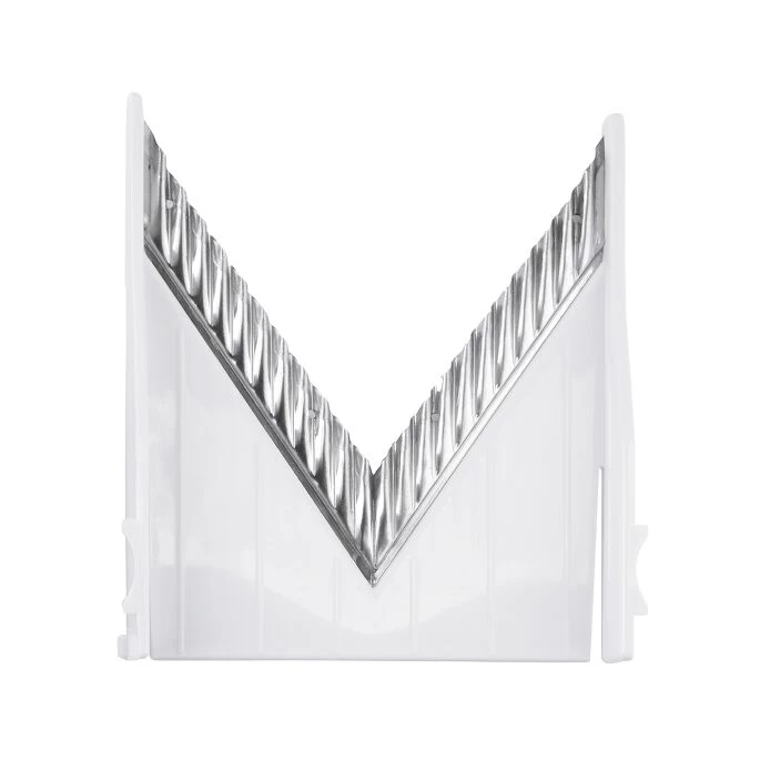 The V-Blade Mandoline Slicer’s sharp, hardened stainless steel crinkle blade easily slices firm vegetables and soft fruits into crinkle cuts. This replacement part is only for use on the Good Grips V-Blade Mandoline Slicer, item number 1155700.