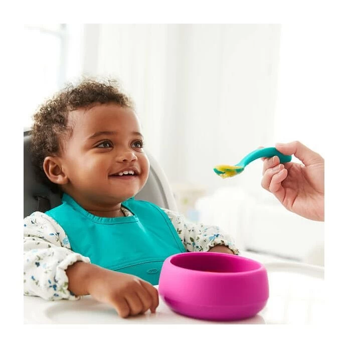 This Silicone Bowl is the perfect first serving dish for new eaters. Made entirely of BPA-free silicone, this Bowl features a weighted base that helps prevent accidental tipping — or purposeful tossing. Tantrum-proof silicone construction stands up to all kinds of banging without chips or cracks. The high walls of the Bowl curve inward to help toddlers get more food onto their spoons as they scrape the sides. This Bowl is designed to fit in little hands, so it’s easy for kids to carry cereal or grapes wherever they want to go. Dishwasher and microwave safe.