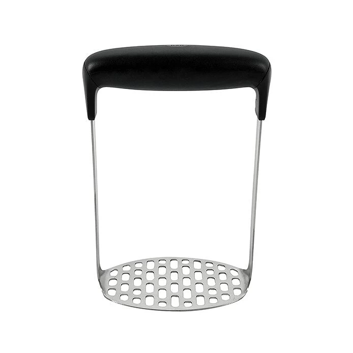 This innovative Potato Masher puts less pressure on your hands while churning out smooth, soft mashed potatoes. A broad, soft, horizontal handle lets you press straight down as it absorbs pressure. A fine-grid, stainless steel mashing plate yields smooth mashed potatoes with no lumps.