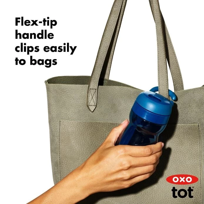 This 12-oz water bottle features our patented, spill-proof straw that minimizes messy leaks, drips and dribbles. The valve opens the moment your tot’s lips touch the straw, so it’s easy for kids who want to do it all themselves. The straw lid opens easily for toddlers, while grown-ups will have no trouble separating the two-part hinged cap for a thorough cleaning. The hourglass shape fits just right in little hands. The flexible handle hooks quickly onto diaper bags, backpacks and more to be within reach on every adventure.